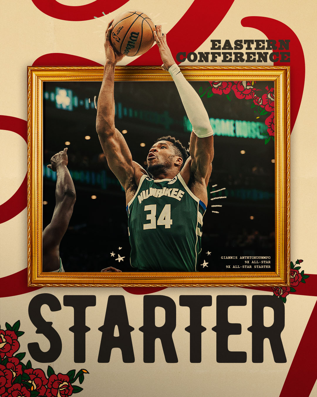 字母哥入选2025年全明星首发,他9次全明星全部首发。