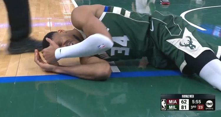 看着都疼!字母哥和阿德巴约拼抢 被后者肘到面部痛苦倒地