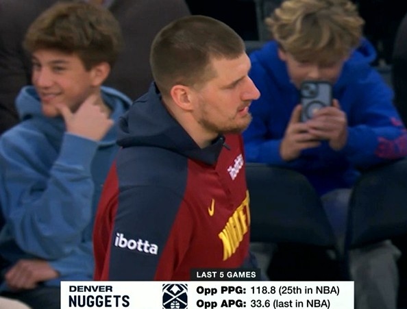 掘金近5场场均丢118.8分 场均让对手送出33.6次助攻联盟最差
