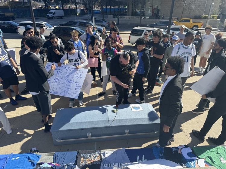 疯狂!球迷抬棺材在美航中心门口举行葬礼:独行侠安息吧