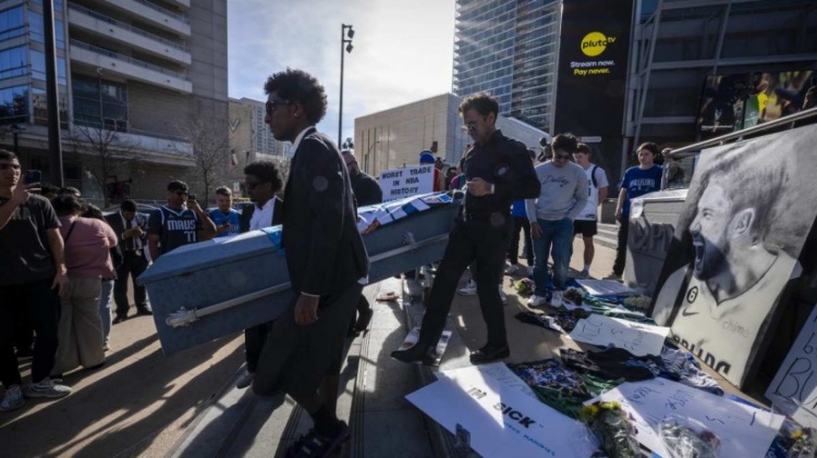 他们走上街头巷尾,在德克的雕像下面写下愤怒的宣言,他们挂起东契奇的球衣,在忠诚永不褪色的宣言下面标记嘲讽,他们甚至抬了一个棺材,表示独行侠已死,喊着哈里森赶紧滚蛋。