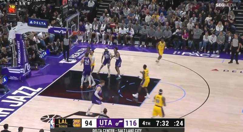 2025年02月11日 东契奇首秀三节14+5 詹姆斯24+7+8 湖人胜爵士6连胜升第四