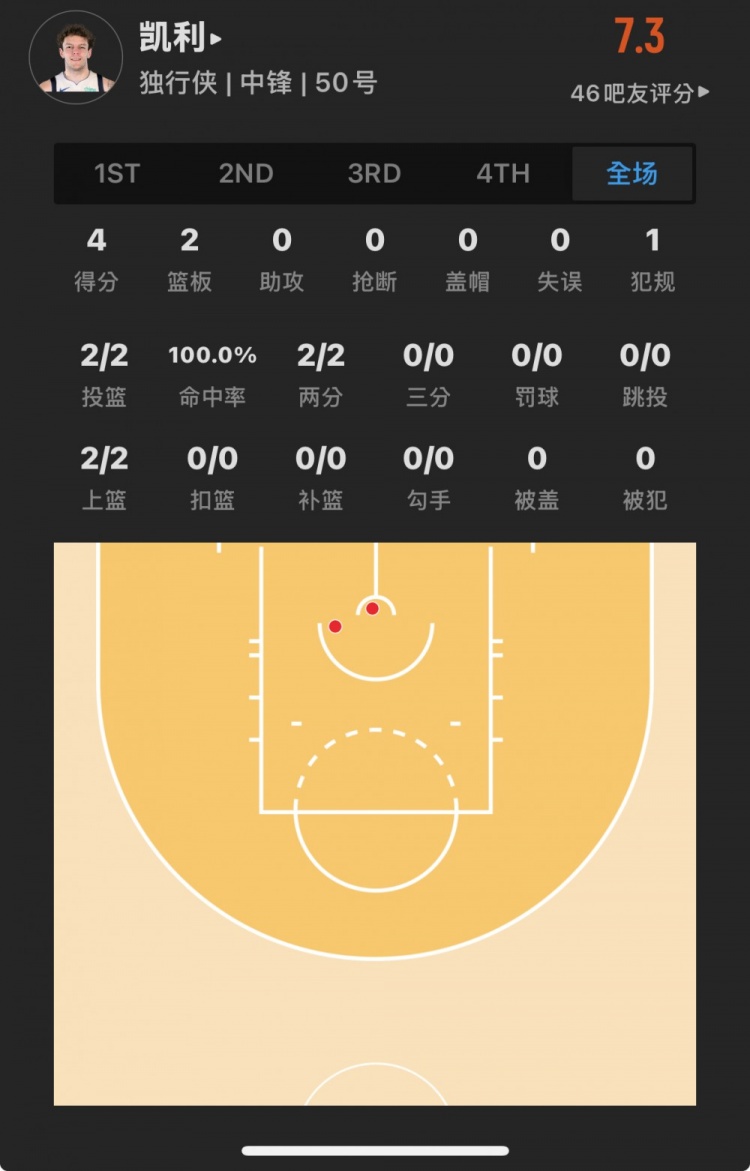 独行侠落选秀 凯勒-凯利 登场2.7分钟