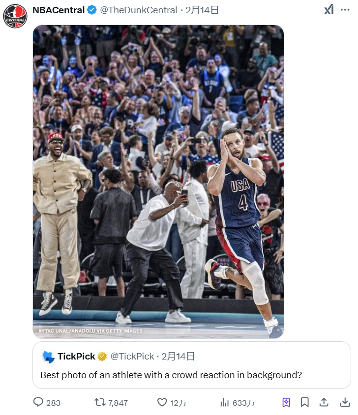 12万赞!球迷为背景的最佳运动员照片?美媒晒库里金色匕首!