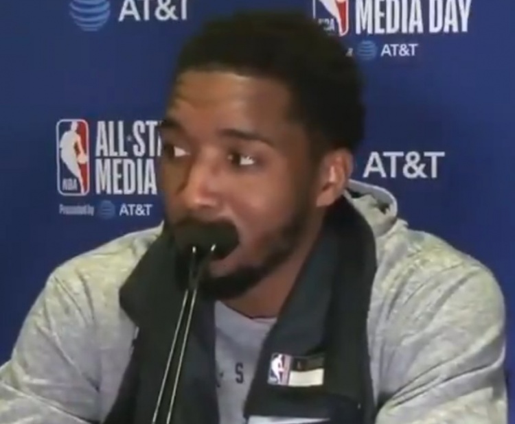 2月16日讯 今日是NBA全明星训练和媒体采访日,米切尔接受了记者采访。