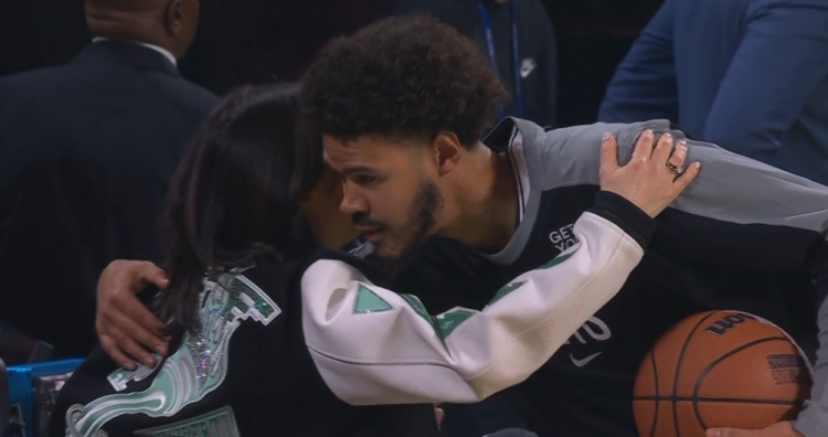 卡梅隆-约翰逊代表篮网参加三分球大赛 老板娘场边给予鼓励