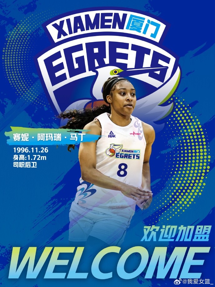厦门女篮在内线拥有伊曼妮-斯塔福德的情况下,选择补强外线,签约美国后卫赛妮-阿玛瑞-马丁。1996年出生的塞妮,身高172cm,曾在波多黎各和冰岛联赛征战。在冰岛效力期间,她场均贡献26.4分5.7篮板3.4助攻率队夺冠,成功获得最有价值球员