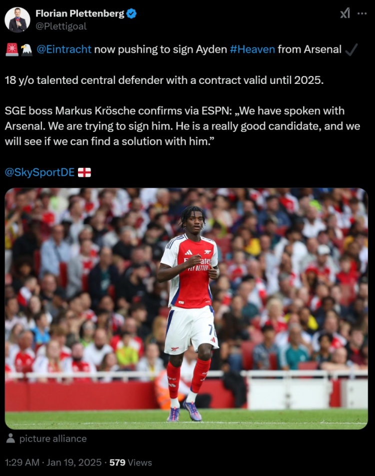 1月19日讯 法兰克福主帅托普默勒确认,俱乐部正在尝试签下阿森纳18岁中卫希文,球员的合同在本赛季结束后到期。
