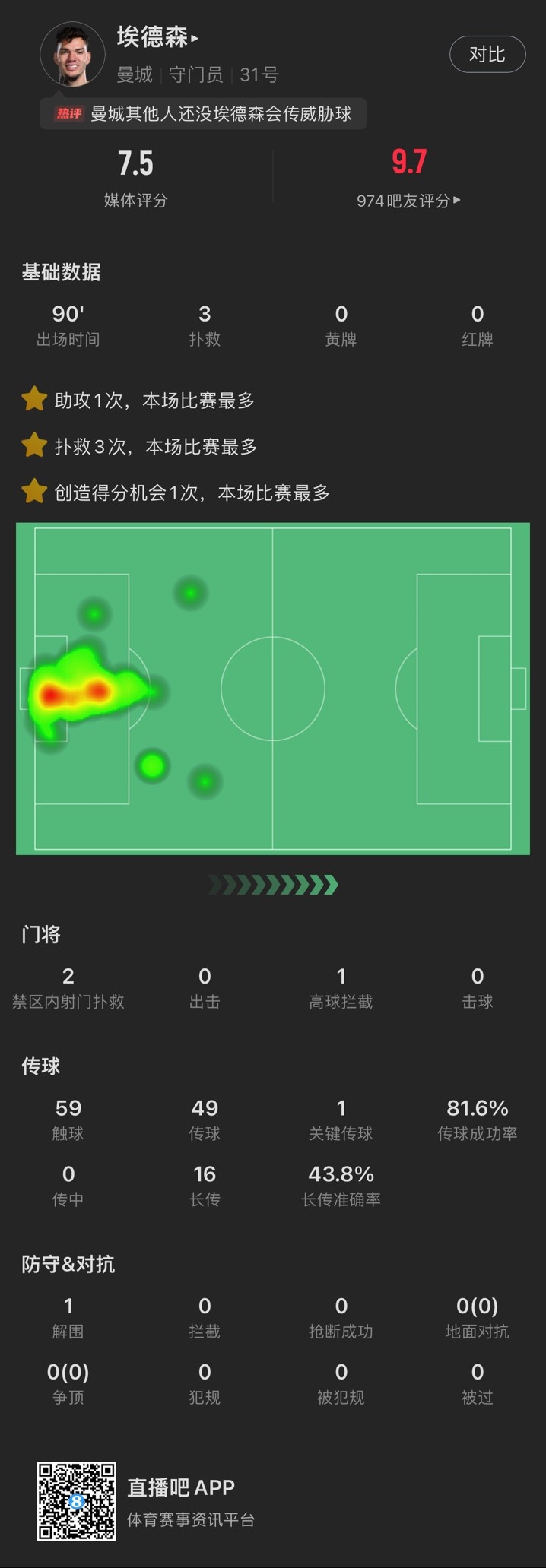 1月26日讯 英超第23轮,曼城3-1战胜切尔西,本场比赛曼城门将埃德森表现出色,帮助球队取得胜利。