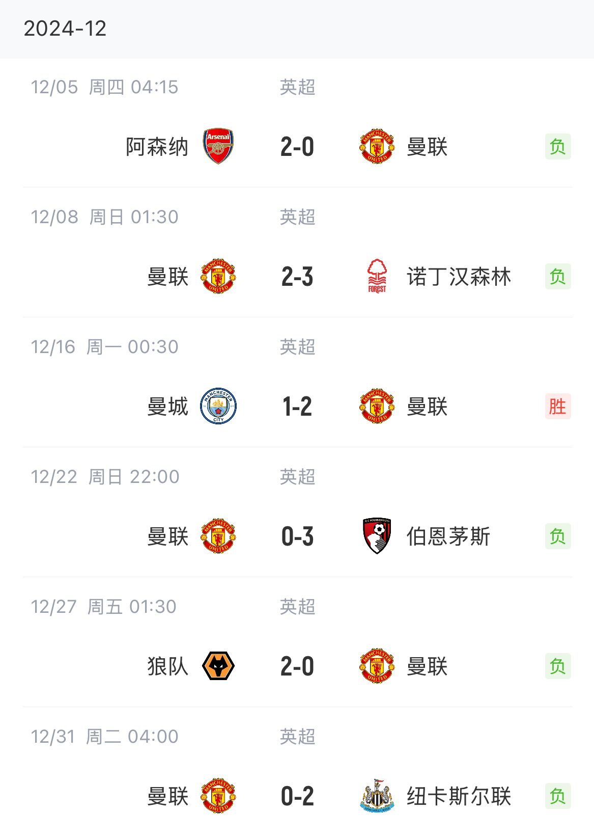 自阿莫林执教以来,曼联11场联赛输掉了6场,赢了3场,平了2场。