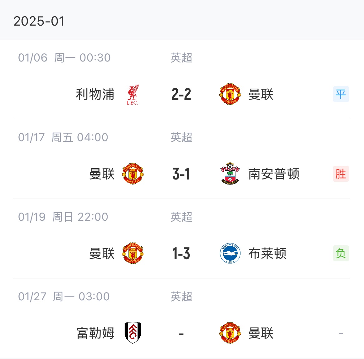 曼联上一轮1-3不敌布莱顿,近9轮英超输掉了6场,另外3场赢了曼城、南安普顿,平了利物浦。