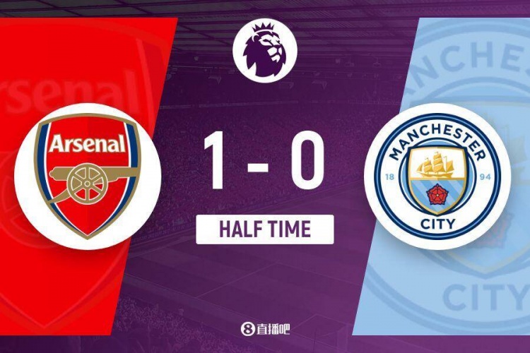 上半场伤停补时1分钟,半场结束,阿森纳暂1-0曼城。