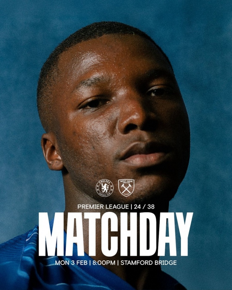 切尔西官方社媒发布了为此役制作的海报,队内中场凯塞多单人出镜。