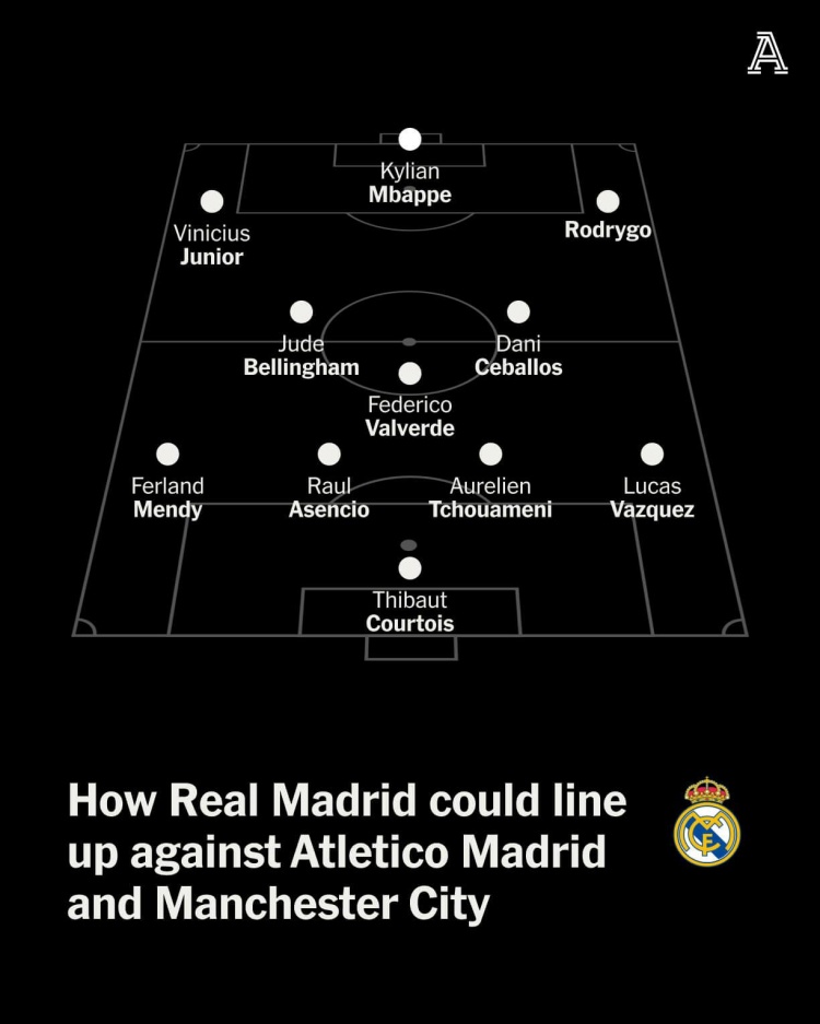2月8日讯 皇马将在本轮西甲焦点战主场迎战马竞,随后还将迎来同曼城的欧冠对决,《TA》预测了皇马未来两场的首发情况。