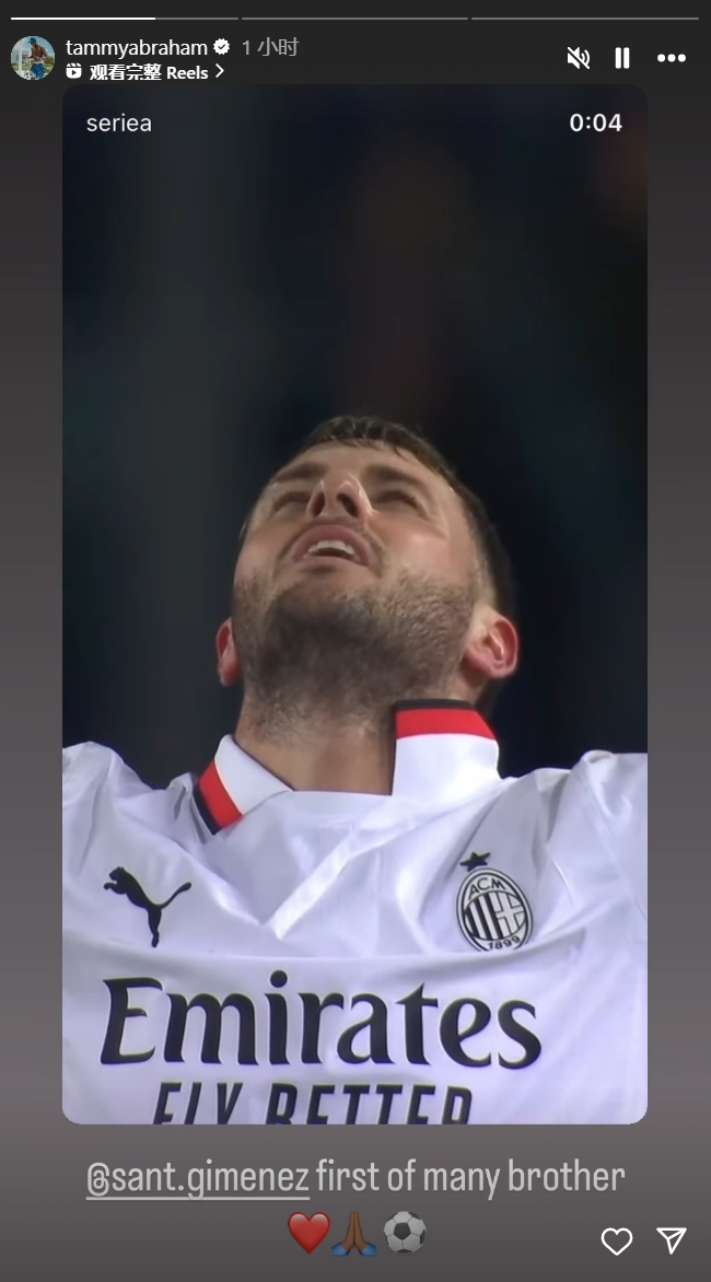 亚伯拉罕祝贺希门尼斯米兰处子球:未来很多进球中的第一个!