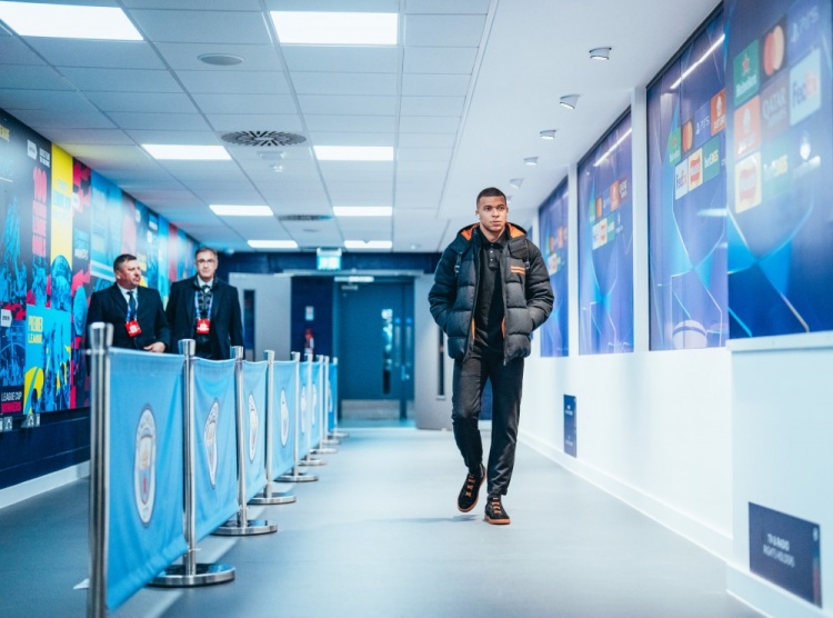 比赛前,曼城官推晒出了维尼修斯、姆巴佩和莫德里奇抵达球场的照片,并配文:“我们的客人来了。”其中非常醒目的是,曼城在更衣室入口处贴了罗德里夺得去年金球奖的庆祝海报。