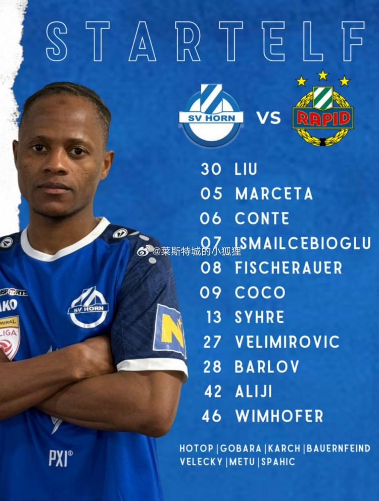 热身赛SV霍恩1-0维也纳快速二队,中国门将刘邵子洋首发出战。