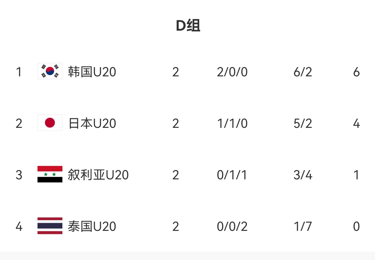 02月17日讯 U20亚洲杯D组第2轮结束,韩国国青提前晋级淘汰赛,泰国国青被淘汰,末轮日本叙利亚将争第2个晋级席位。