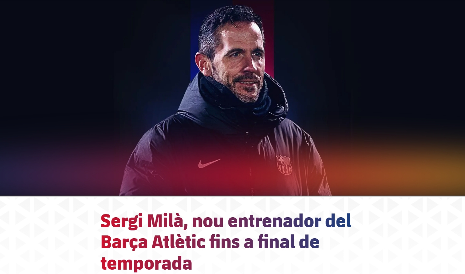 此前担任俱乐部青训体系11人制足球协调员的塞尔吉-米拉,接替了阿尔伯特-桑切斯的职位。阿尔伯特-桑切斯过去两个赛季曾作为拉法-马克斯的助教,协助执教巴萨竞技,并于去年夏天升任主教练但执教成绩糟糕,未来将继续在俱乐部技术部门任职。