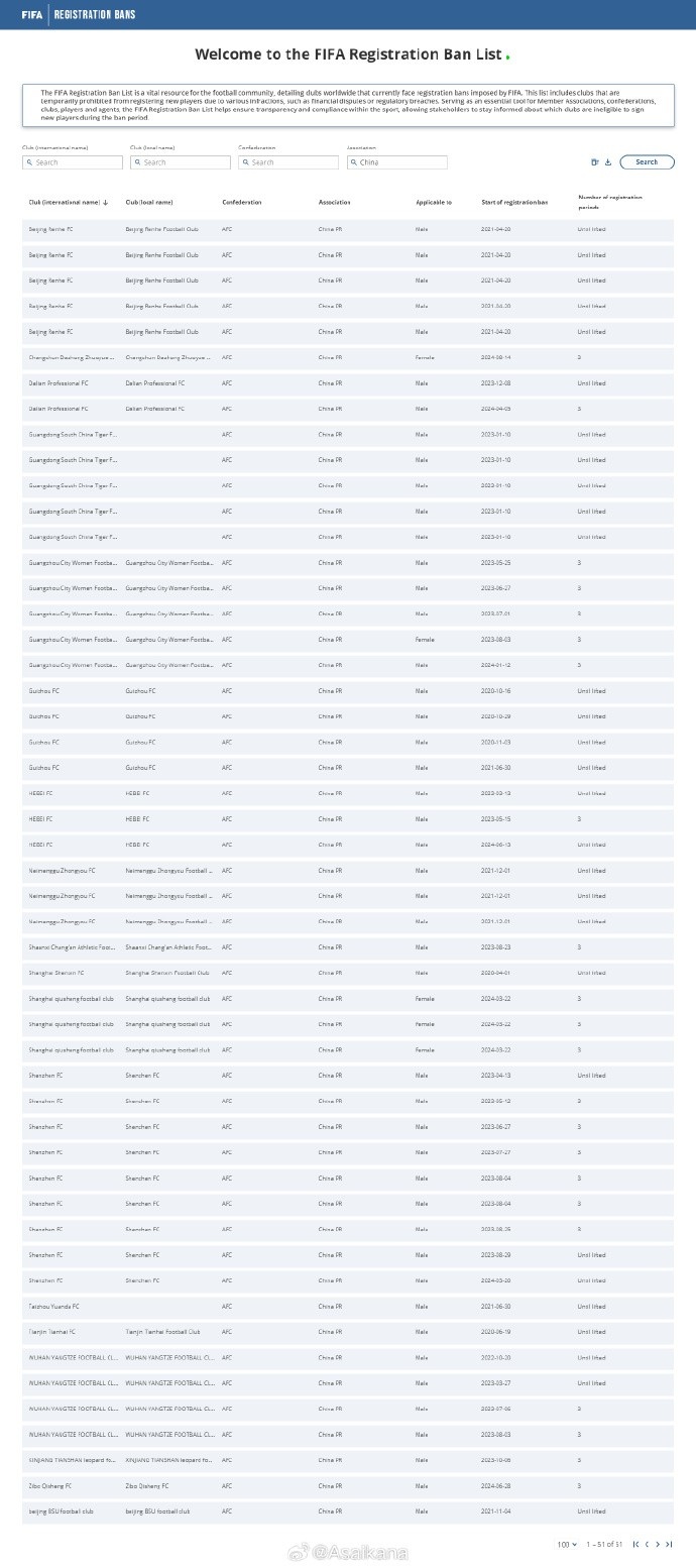 北京国安的转会注册禁令清零。现存所有男足俱乐部的转会禁令都已经清零了。