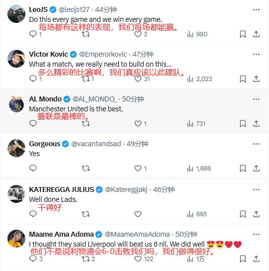 不满平局!曼联球迷热议:精彩&为球队自豪,不是说利物浦会6-0吗